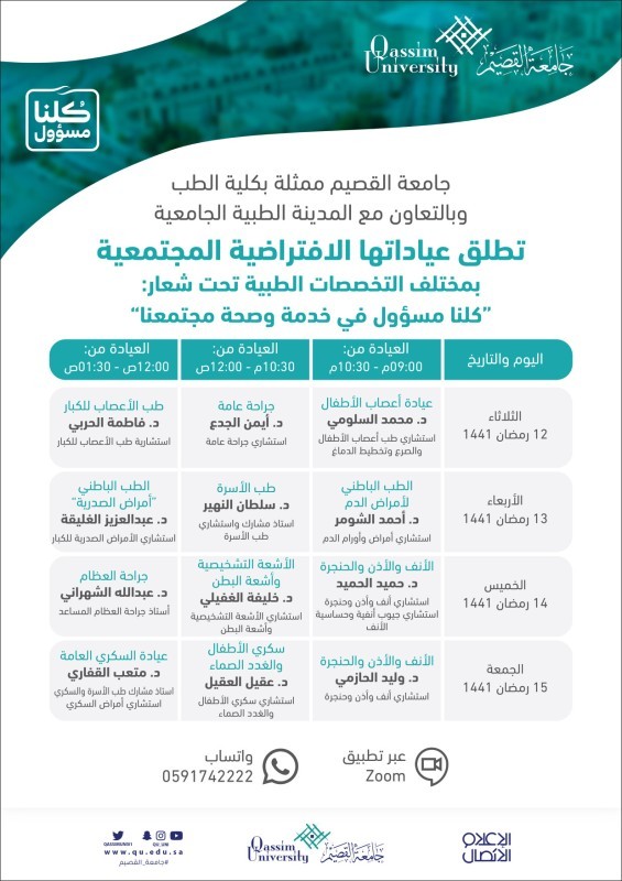 كلية الطب بجامعة القصيم تطلق عيادتها الافتراضية المجتمعية بمختلف التخصصات أخبار السعودية صحيقة عكاظ