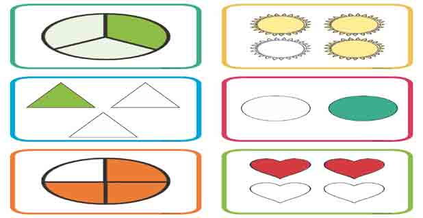 تعليم الكسور الرياضية للأطفال وبطاقات الكسور البسيطة للاطفال