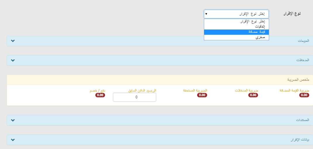 اقرار القيمة المضافة فاتورة المبيعات المشتريات إقرار القيمة المضافة
