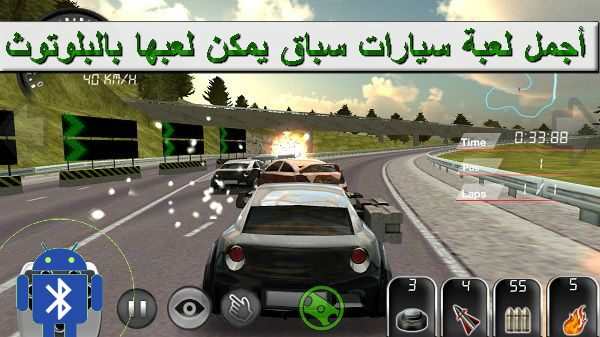 لعبة سيارات سباق تدعم اللعب شراكة باتصال بلوتوث او ويفي بدون انترنت