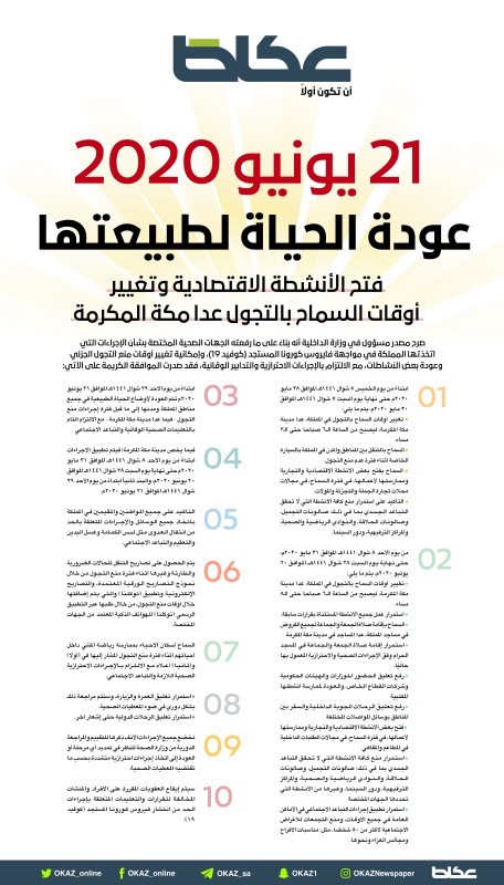 21 يونيو 2020 عودة الحياة لطبيعتها في المملكة أخبار السعودية صحيقة عكاظ