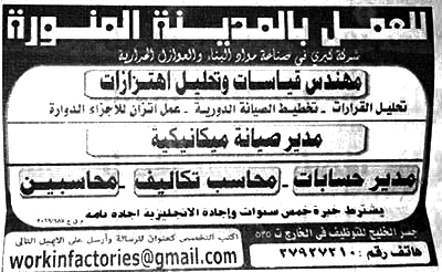 وظائف للمهندسين والمحاسبين في المدينة المنورة بالسعودية وظائف خاليه