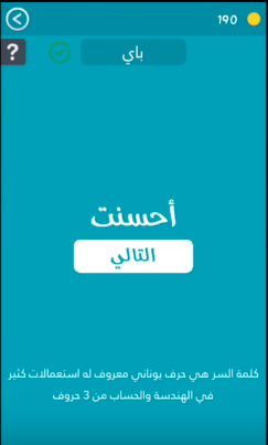 اجابة هى حرف يونانى معروف له استعمالات كثير فى الهندسة والحساب من 3 حروف من لعبة كلمة السر 2