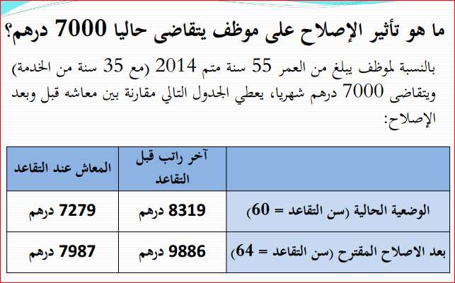 تربية بريس التخفيضات التي سيعرفها راتب المعاش عند تطبيق إصلاح بنكيران لصندوق التقاعد بالرغم من الزيادة في سن التقاعد والمساهمات