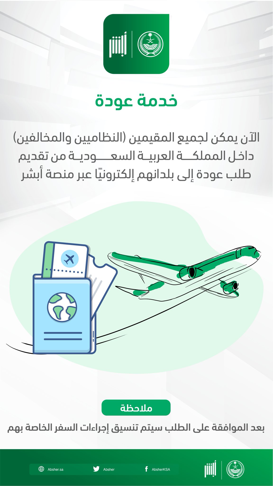 أبشر Twitterren خدمة عودة ت مك ن المقيمين المتواجدين داخل المملكة من تقديم طلب عودة إلى بلدانهم بشكل إلكتروني خلال فترة جائحة كورونا عبر منصة أبشر Awdah Service Allows Residents In Saudi Arabia To