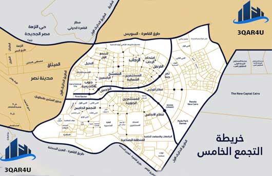 خريطة القاهرة الجديدة والتجمع الخامس ومناطقها بالصور التفصيلية Maskany مسكني