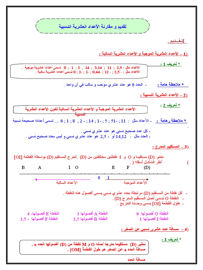الاعداد العشرية الموجبة و الاعداد العشرية السالبة