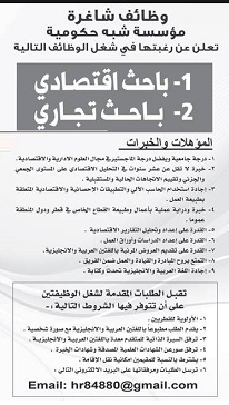 اعلان لملء وظائف عدد 2 صادر عن مؤسسة حكومية استثمارية