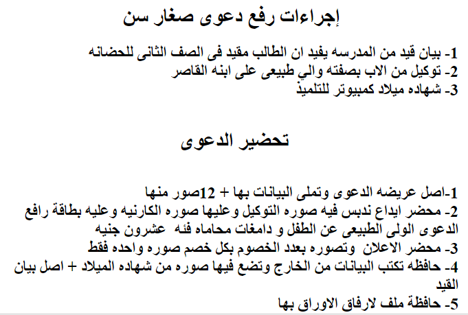 معلومات المحامي إجراءات رفع دعوى صغار سن