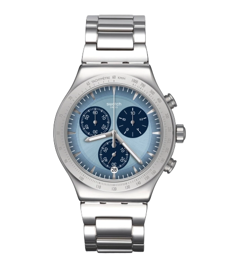 سواتش ويلثي ستار ساعة للرجال استانليس ستيل كرونوغراف مقاومة للماء مينا لون سيلفر Yos401g