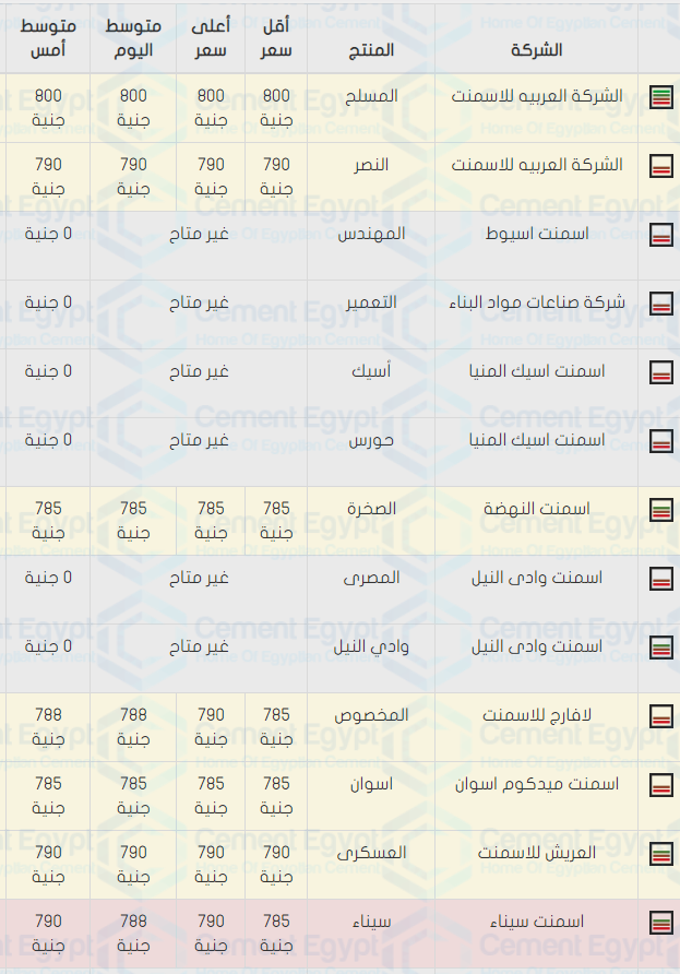 سعر الأسمنت في مصر اليوم أسعار اليوم