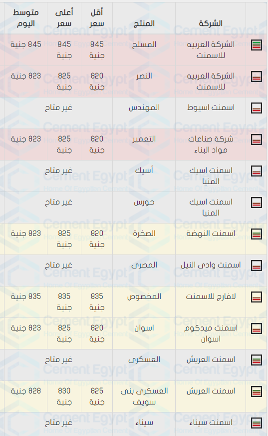 سعر الاسمنت اليوم فى مصر
