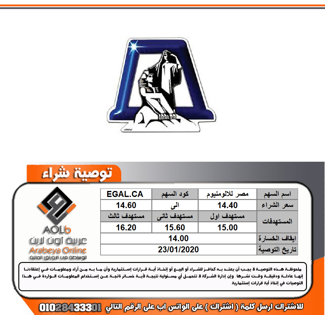 توصية شراء شراء مصر للالومنيوم Egal Ca من 14 4 ل 14 6 مستهدفات 15 و 15 60 و 16 20 ايقاف خساره 14