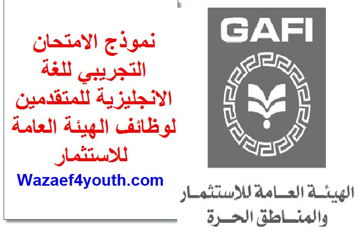 ننشر نموذج الامتحان التجريبي للغة الانجليزية للمتقدمين لوظائف الهيئة العامة للاستثمار والمناطق الحرة 2016