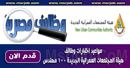 مواعيد اختبارات وظائف وظائف هيئة المجتمعات العمرانية الجديدة 100 مهندس