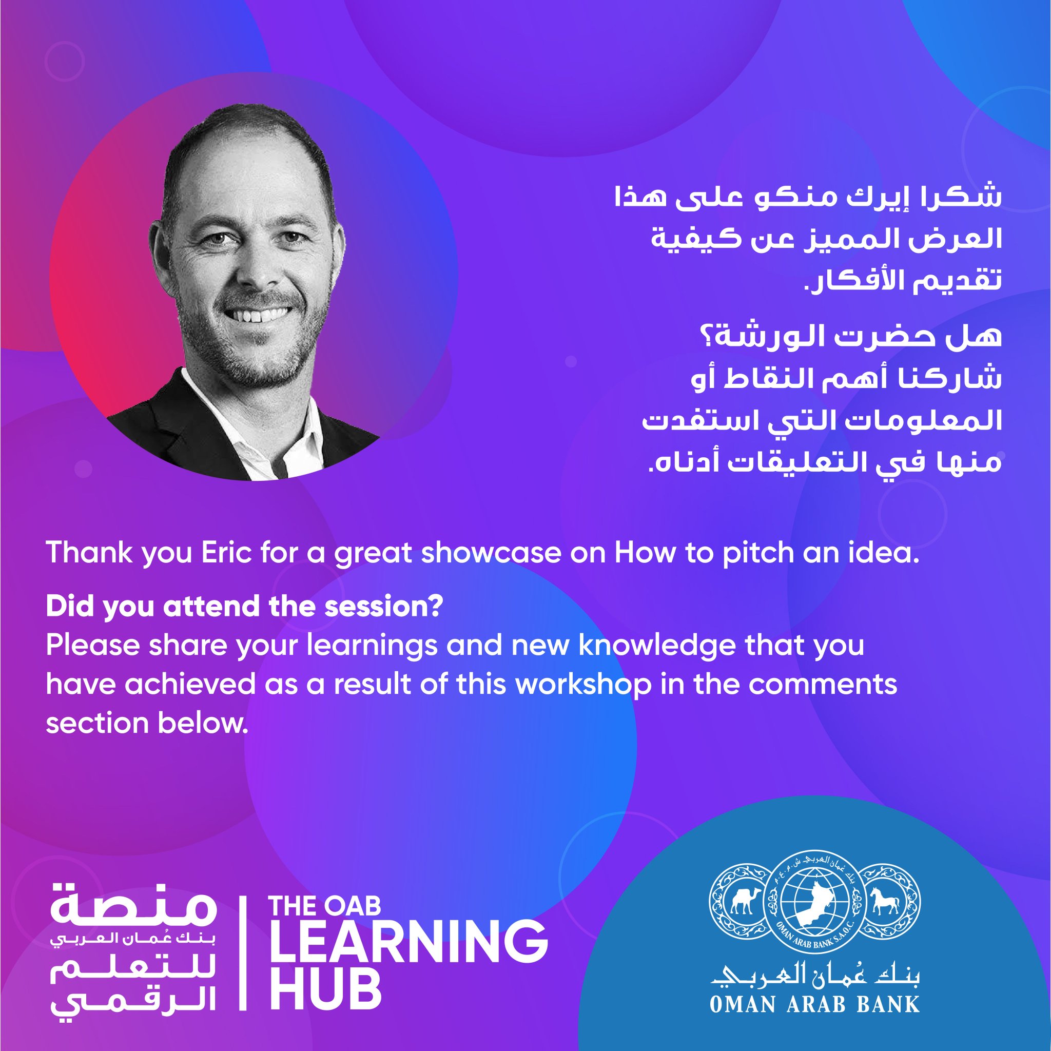 بنك عمان العربي Oman Arab Bank On Twitter Thank You Eric For A Great Showcase On How To Pitch An Idea Did You Attend The Session Please Share Your Learnings And New